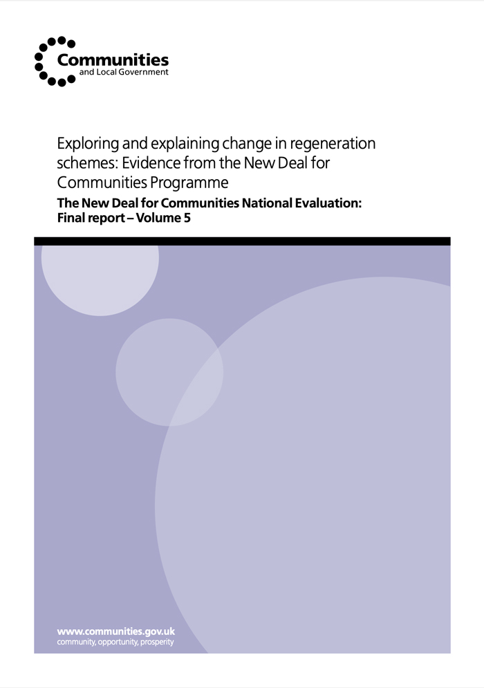 Centre for Regional Economic and Social Research Social and Economic Research InstituteThe New Deal for Communities Programme: Volume five - Exploring and explaining change in regeneration schemes