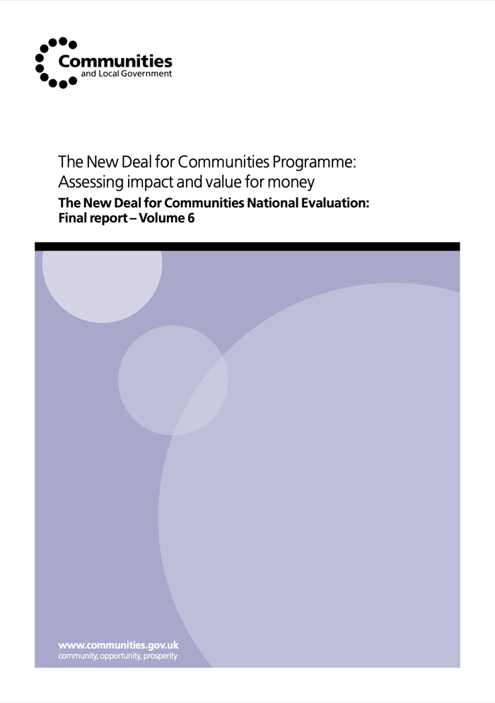Centre for Regional Economic and Social Research Social and Economic Research InstituteThe New Deal for Communities Programme: Volume six - Assessing impact and value for money