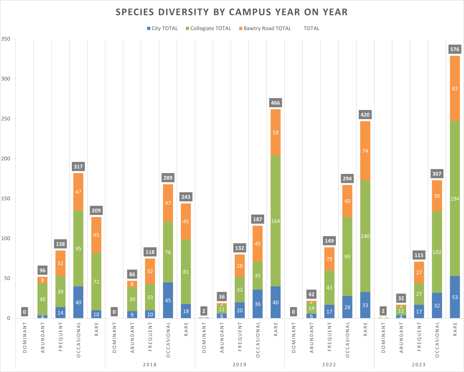 Graph showing diversity of species recorded across Campus