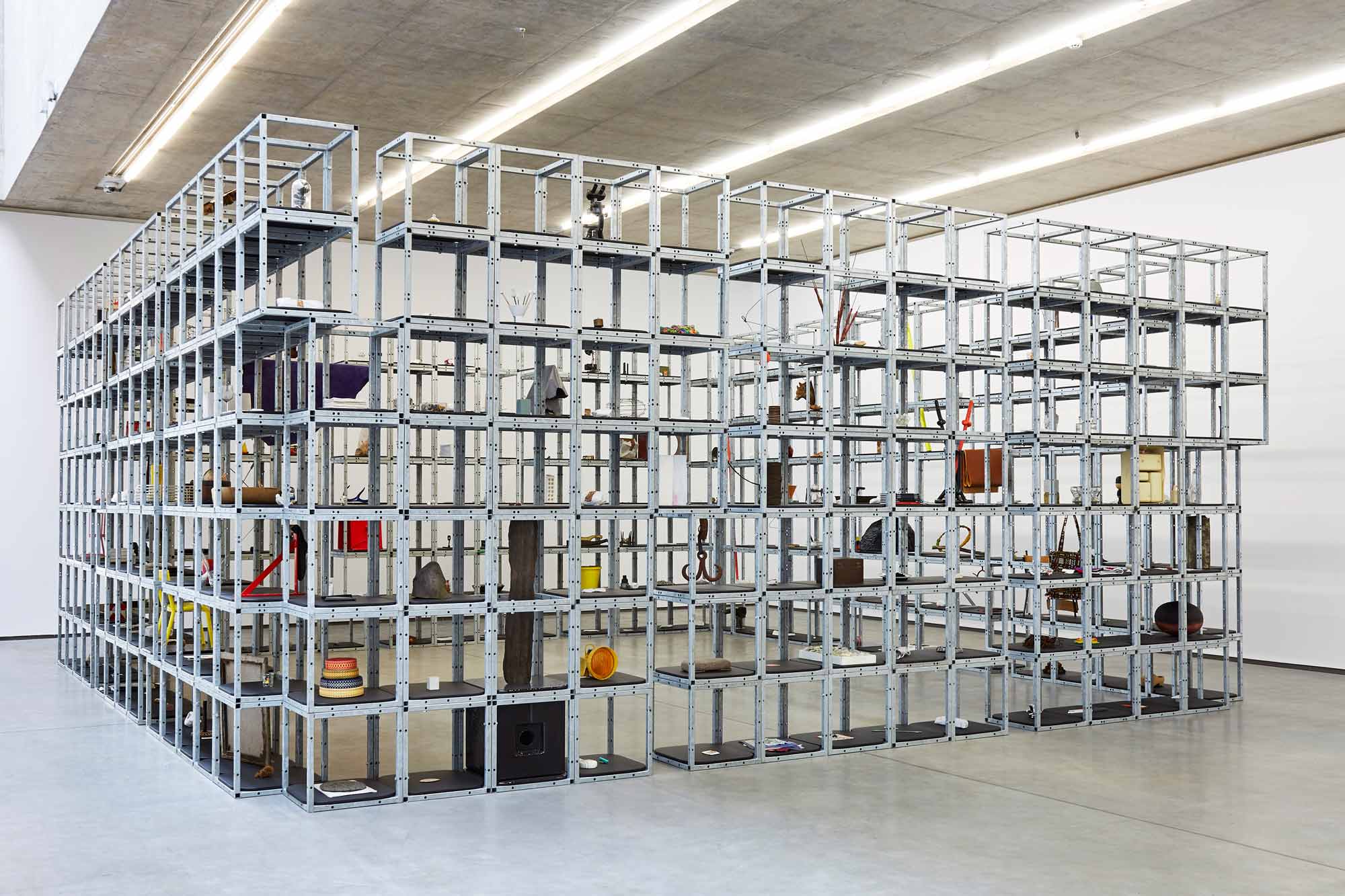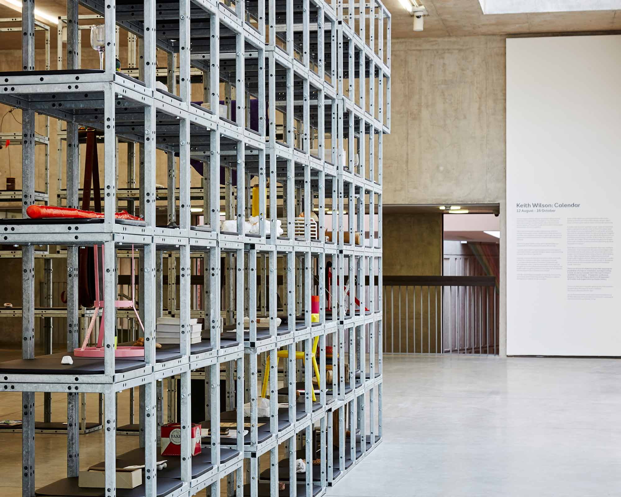 The resulting exhibition Calendar offered visitors an architectural outline of the artist’s studio comprising an entire calendar year of bolted-together single-day units built into offset three-month slabs as walls. Built of galvanised steel cubes and blackboard baseboards, the constituent materials brought with them both atavistic (agrarian) and aspirational (academic) references in the building of this imagined world of the artist/creator. The structure was populated with small studio works; daily thoughts filling an everlasting advent calendar, with the first and last days of the year sharing a single cube and completing an annual loop. Frames of reference shifted between the found, the made, the given, and the stolen, as art history was forced into many and various juxtapositions, while the visitor was freely invited to stand both outside of and in the place of the artist. This exhibition was funded by and premiered at the MAC, Belfast, in 2016.