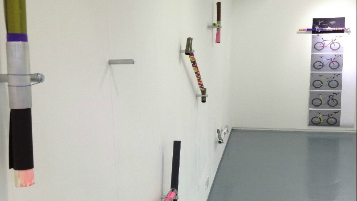 The research has led to the production of a painting device/ tool, made in response to studio visits. This tool is being used to as part of a dialogue with a graphic designer/ typographer to construct a font, which will be disseminated through posters and paintings.