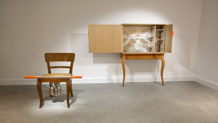 Several artefacts from Domesticated became part the group exhibition 'Together' at the Art Pavillon Munich, 08-12 March 2017. On display was 'Workout IV' (chair) and seven Labia plates from the Cabinet of Norms & Choices.