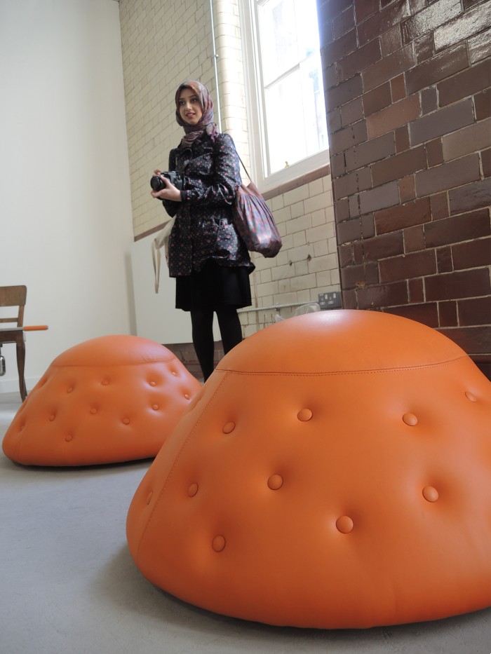The process of making the artefacts includes the appropriation of technical skills from plastic surgery, upholstery and cabinet-making. Planning the display installation in order to foster interactions involved building a scaled 1:20 model of the exhibition space and testing 1:1 prototypes with volunteers. Sighting specialised literature and triggering conversations with heterodox groups took place to better understand the popularity of such phenomena. For the Cabinet piece a collaboration with the artist Lilian Mattuschka was established in order to avoid a purely male perspective on a gendered design issue and co-design the shapes for the Labia works.