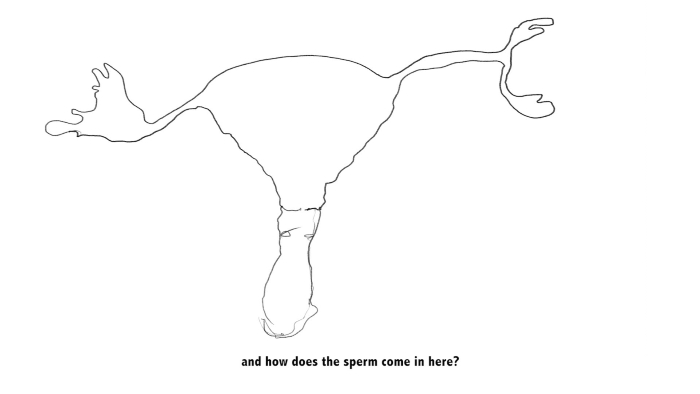 Koski, K. (2014) Not to scale at all. Animation, 10’09”. Medical students’ drawings of the female reproductive system, Estonian Museum of Applied Arts, Tallinn. Curated exhibition Rhizope.