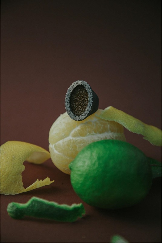 Inspired by commonplace subjects found in still life paintings, Vanitas and Sha-green combined denatured vegetable and fruit peel veneers with other organic and non-organic material to create a series of abstract forms of mourning jewellery, reflecting on the melancholy of everyday acts of eating. In 2017 Vanitas claimed the Koyosha award for promising talent at Itami International Jewellery Exhibition in Japan. In 2019 Sha-green received the grand prix at Itami International Jewellery Exhibition in Japan, Preziosa Young 2020 in Florence, Italy and was also awarded in the category of objects at the Eco Sight exhibition and competition during Amber Trip XVII International Baltic Jewellery Show 2020.