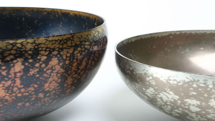 This project explores new ways of working with traditional Japanese alloys and patination through material science analysis and the production of studio work. Japanese metalworkers use a wide range of copper and precious metal alloys which are coloured with a single patination solution, an ancient technique developed for the production of multi-coloured metalwork. Our research aimed to improve our ability to control these materials and processes and to develop new ways of working with them for the production of studio work.