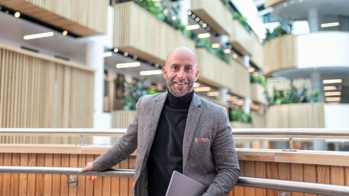 Image of Max standing in front of his business, Bullion Chocolate, which is painted on a black brick wall in gold paint