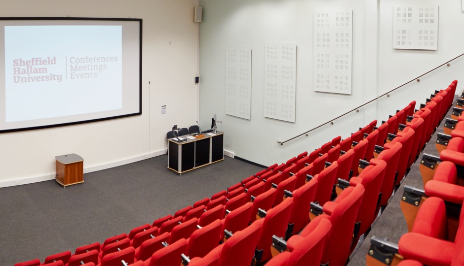 The Pennine Lecture Theatre is the largest theatre at Sheffield Hallam University. With raked seating and a large platform at the front of the theatre, the Pennine can accommodate a number of stage set ups, whatever your event