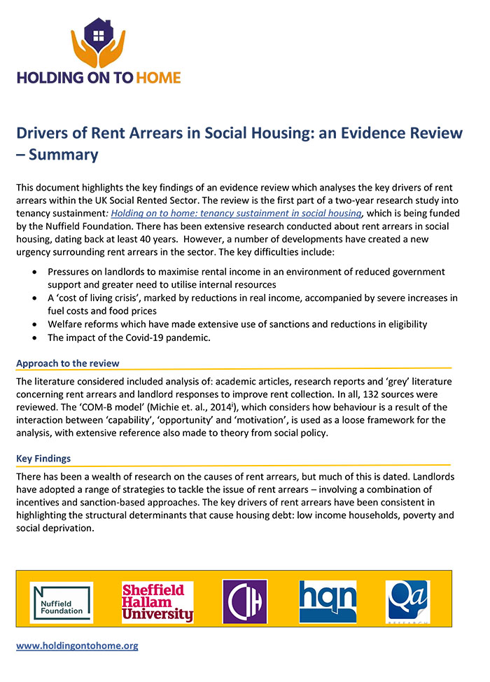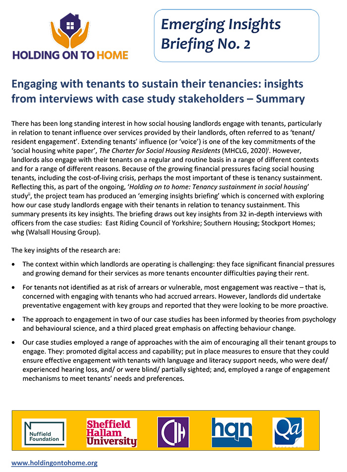 Centre for Regional Economic and Social Research Social and Economic Research InstituteHolding onto Home: Tenancy Sustainment in Social Housing