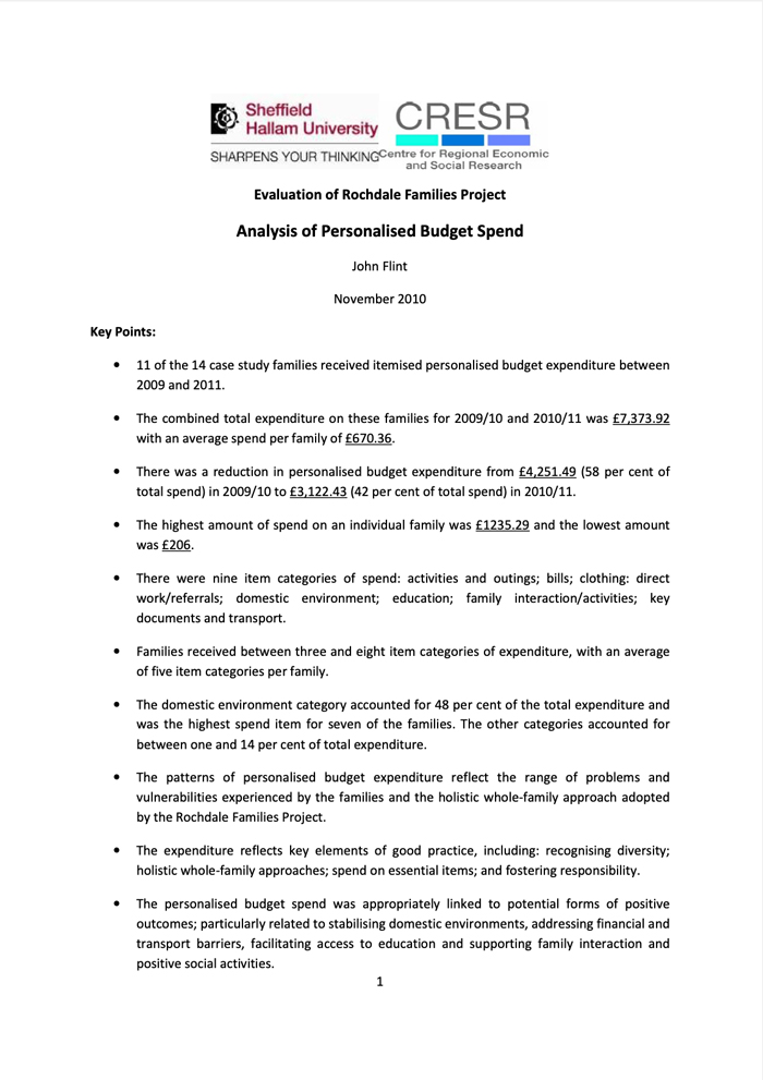 Centre for Regional Economic and Social Research Social and Economic Research InstituteAnalysis of Personalised Budget Spend