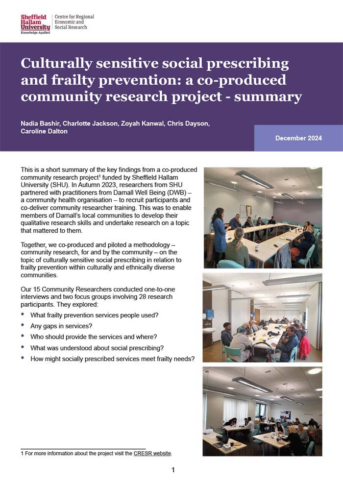 Centre for Regional Economic and Social Research Social and Economic Research InstituteCulturally sensitive social prescribing and frailty prevention: a co-produced community research project - summary