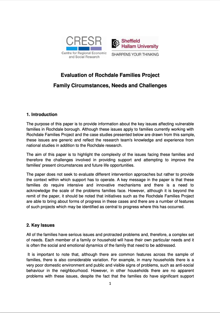 Centre for Regional Economic and Social Research Social and Economic Research InstituteFamily Circumstances, Needs and Challenges