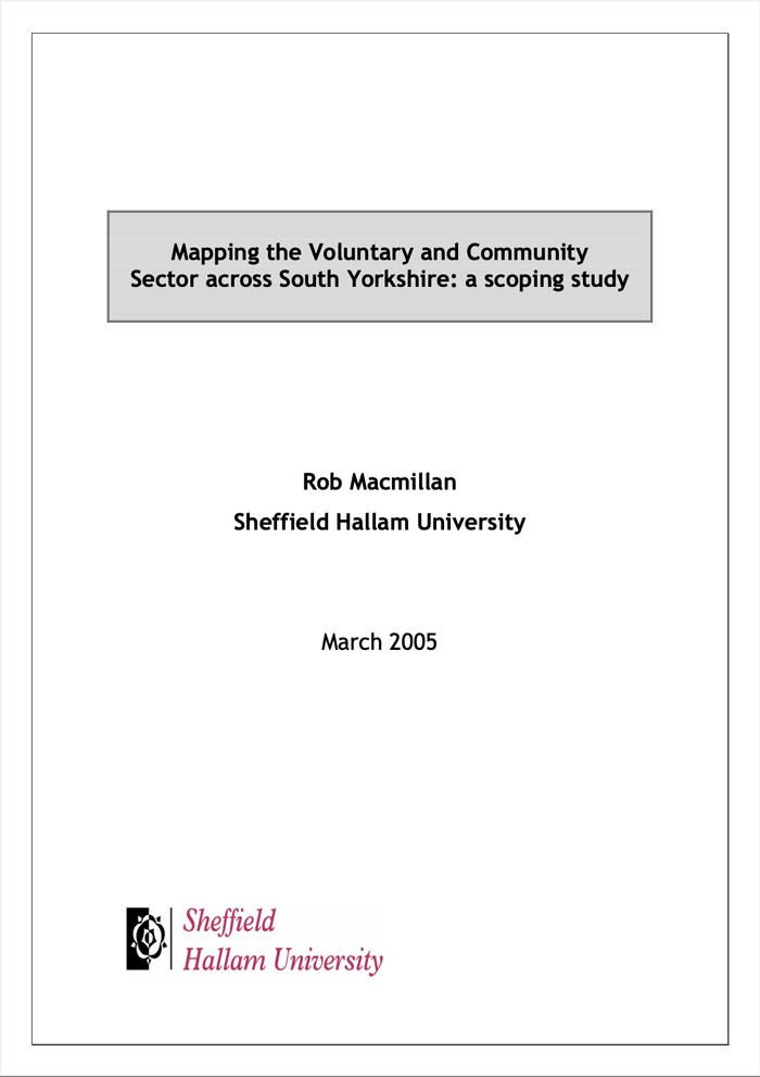 Centre for Regional Economic and Social Research Social and Economic Research InstituteMapping the Voluntary and Community Sector across South Yorkshire: a scoping study