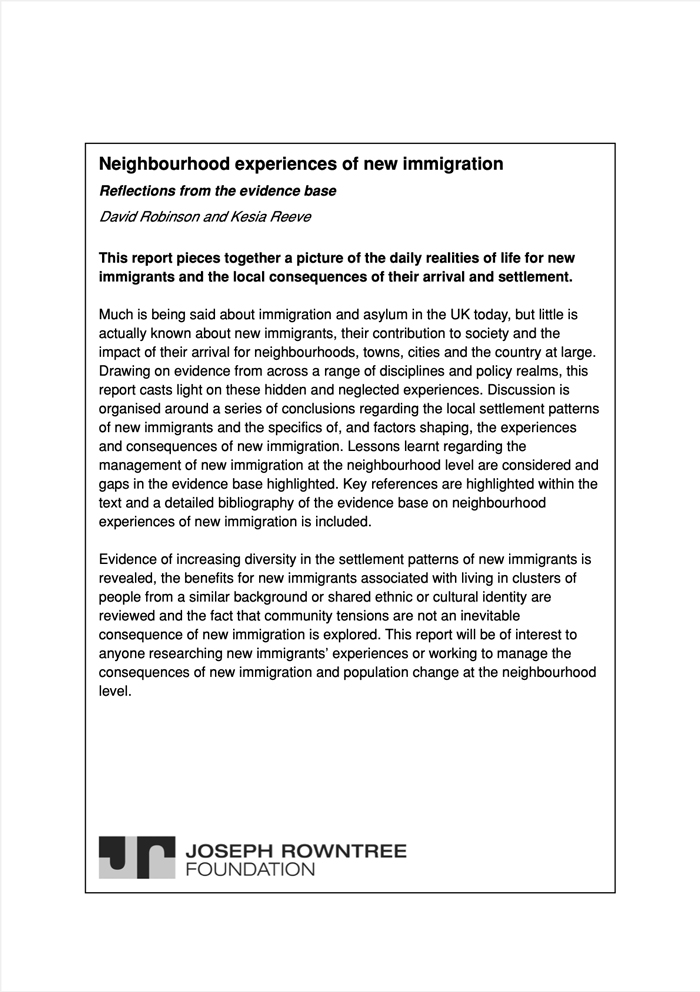 Centre for Regional Economic and Social Research Social and Economic Research InstituteNeighbourhood experiences of new immigration