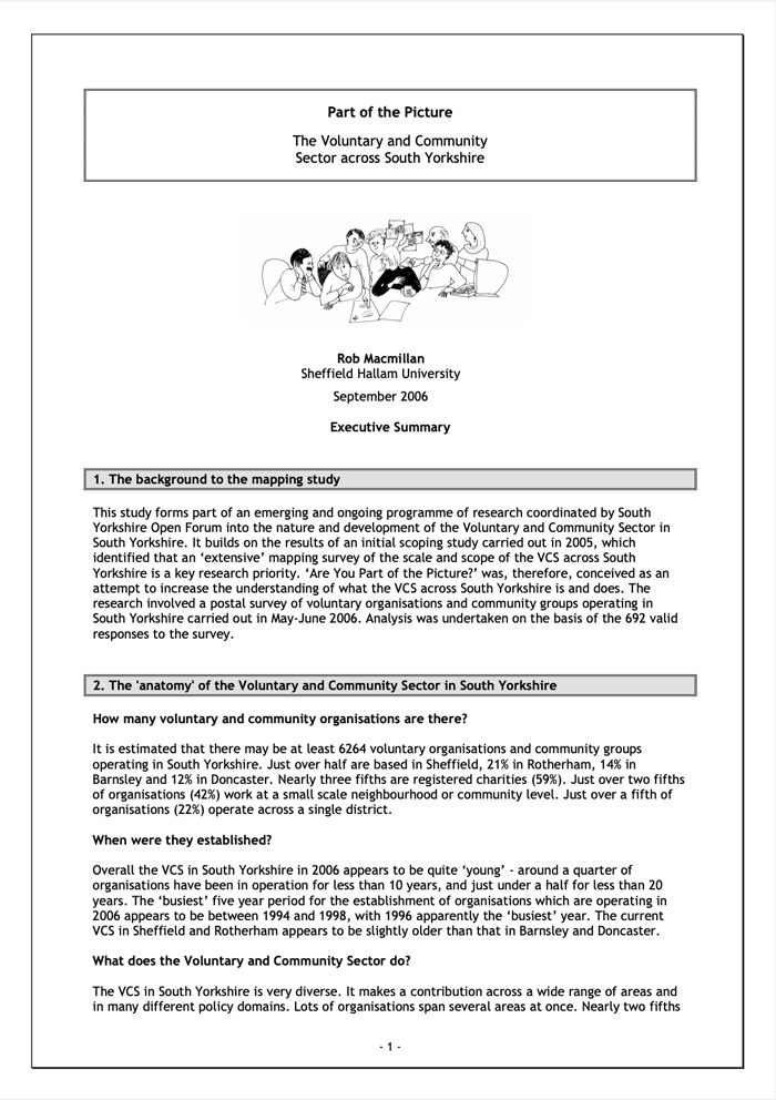 Centre for Regional Economic and Social Research Social and Economic Research InstitutePart of the Picture: The Voluntary and Community Sector across South Yorkshire - Executive Summary