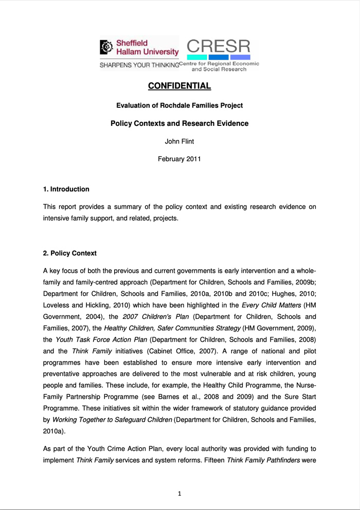 Centre for Regional Economic and Social Research Social and Economic Research InstitutePolicy Contexts and Research Evidence