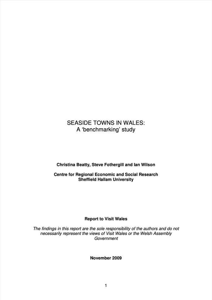 Centre for Regional Economic and Social Research Social and Economic Research InstituteSeaside Towns in Wales: A Benchmarking Study
