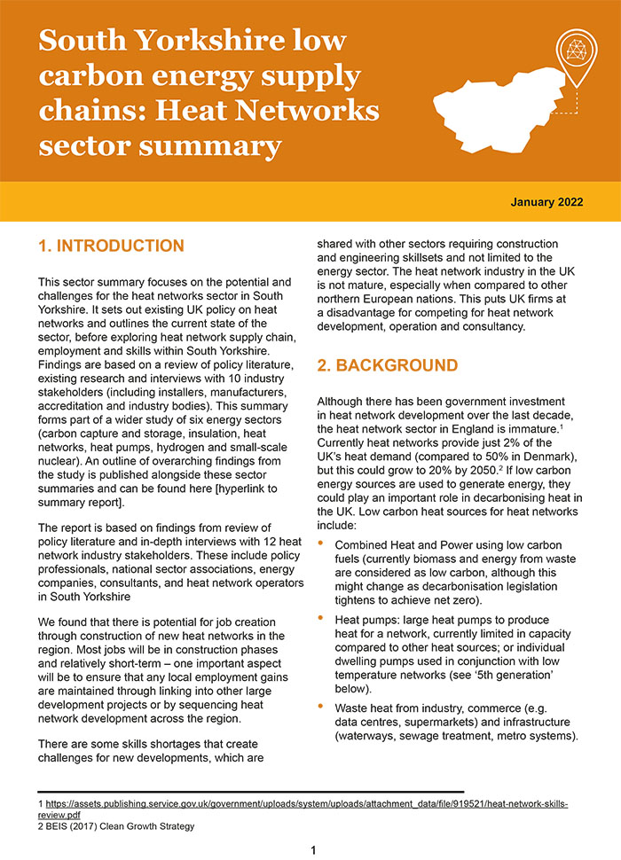 Centre for Regional Economic and Social Research Social and Economic Research InstituteSouth Yorkshire low carbon energy supply chains: Heat Networks sector summary