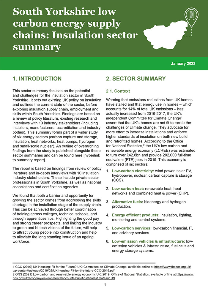Centre for Regional Economic and Social Research Social and Economic Research InstituteSouth Yorkshire low carbon energy supply chains: Insulation sector summary