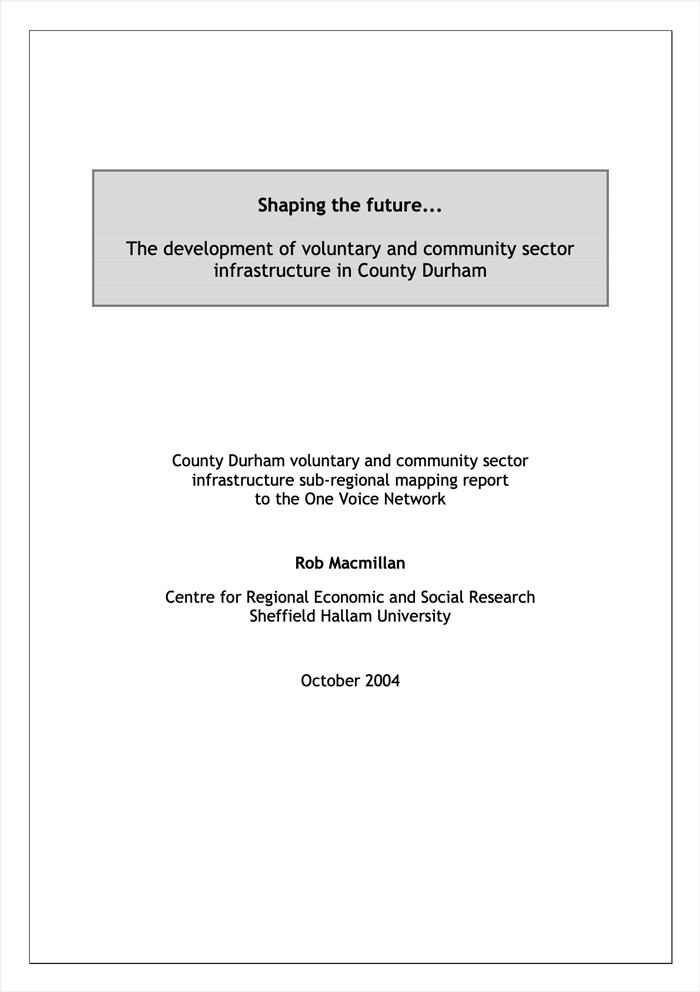 Centre for Regional Economic and Social Research Social and Economic Research InstituteShaping the future...The development of voluntary and community sector infrastructure in County Durham