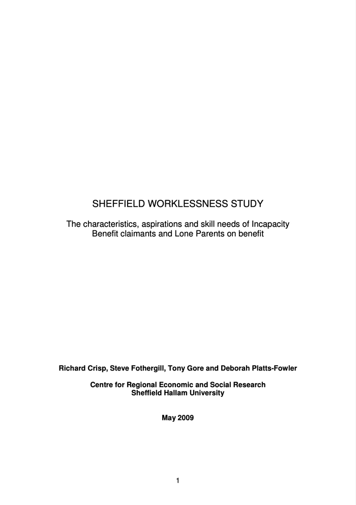 Authors: Richard Crisp, Steve Fothergill, Tony Gore and Deborah Platts-Fowler