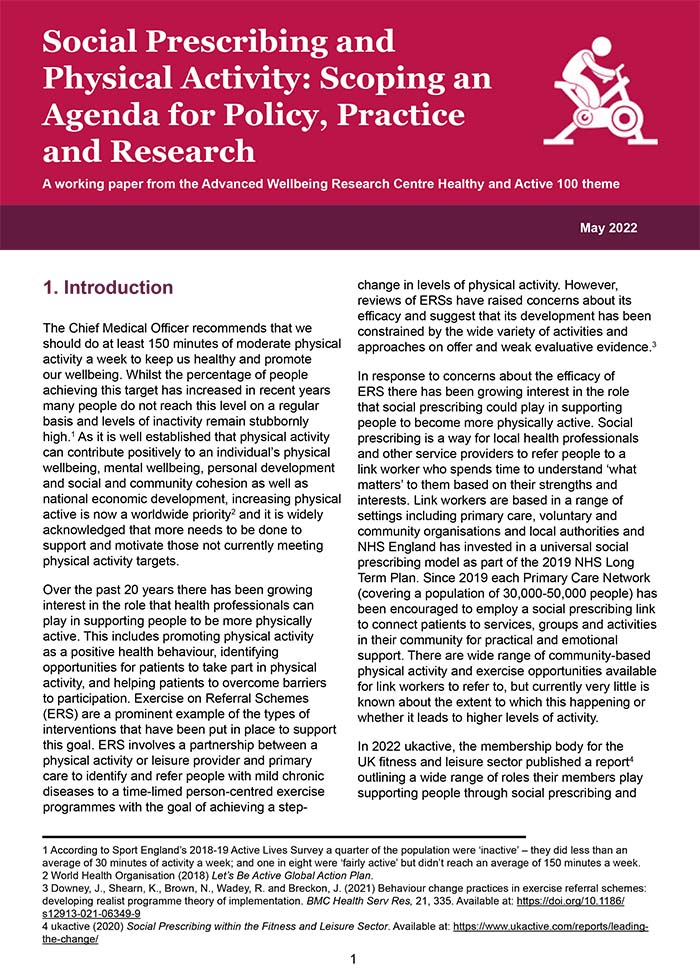 Centre for Regional Economic and Social Research Social and Economic Research InstituteSocial Prescribing and Physical Activity: Scoping an Agenda for Policy, Practice and Research