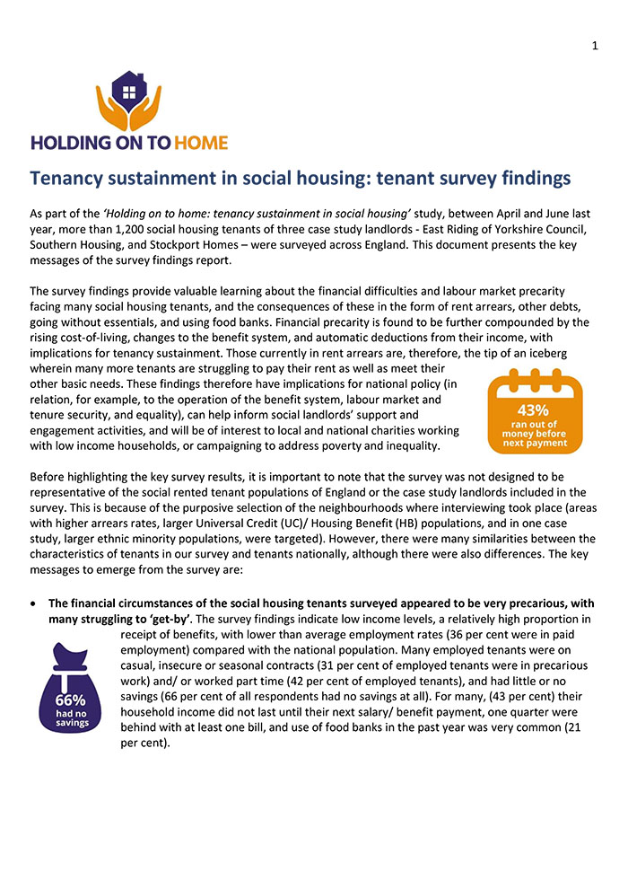 Centre for Regional Economic and Social Research Social and Economic Research InstituteTenancy sustainment in social housing: tenant survey findings - Summary