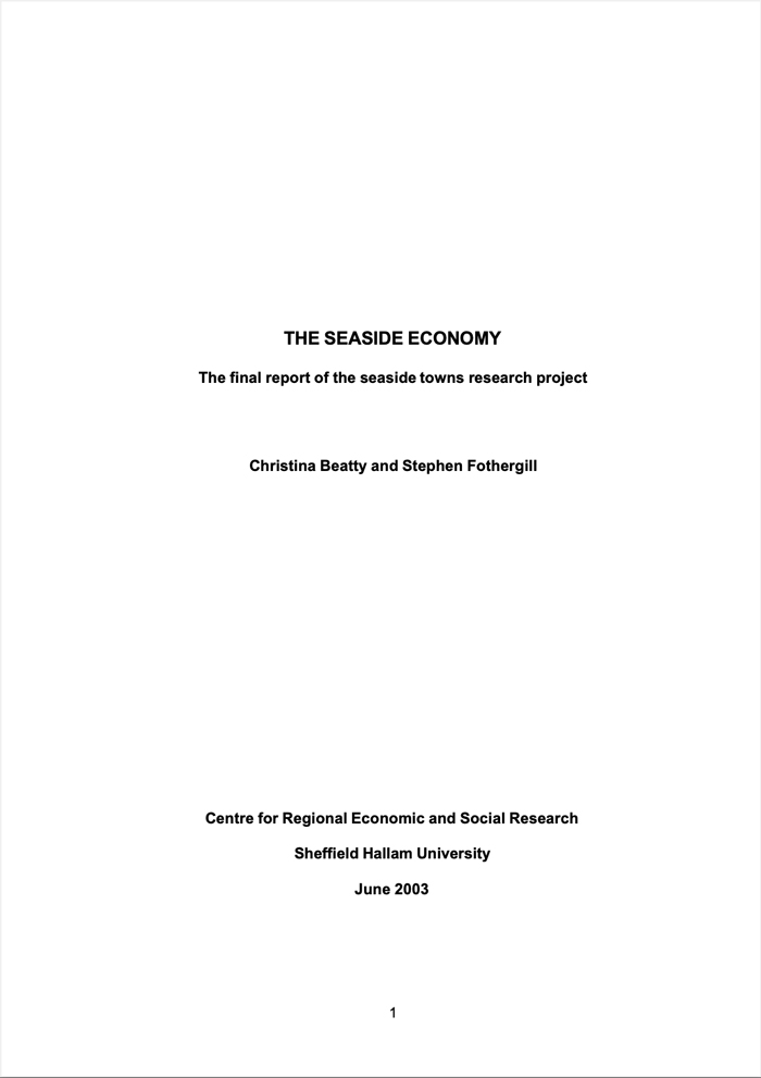 Centre for Regional Economic and Social Research Social and Economic Research InstituteThe Seaside Economy: The final report of the seaside towns research project