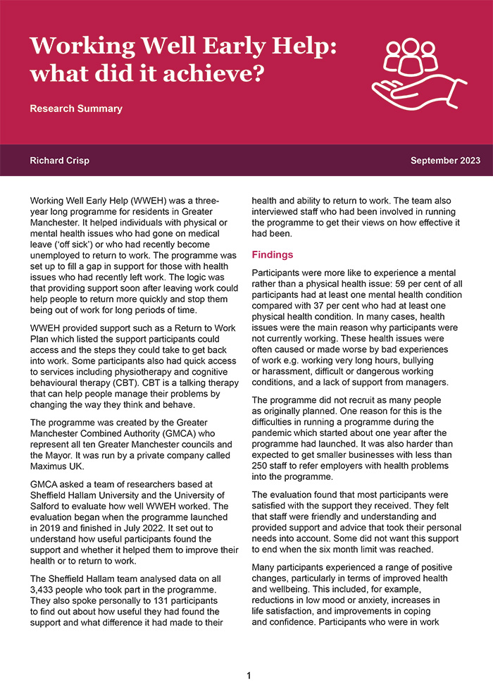 Centre for Regional Economic and Social Research Social and Economic Research InstituteWorking Well Early Help: what did it achieve?