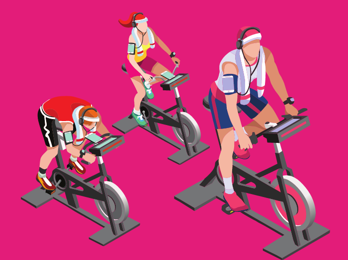 This high-intensity class uses stationary bikes to simulate a bicycle ride. Together, you travel on flat roads, climb hills, sprint and race.