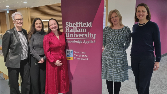 As part of the visit, colleagues from BUE were joined by Prof Liz Mossop and senior leaders from Sheffield Hallam for a tour of University facilities including one of the new Howard Street buildings, Langsett, which will be home to Sheffield Business School.