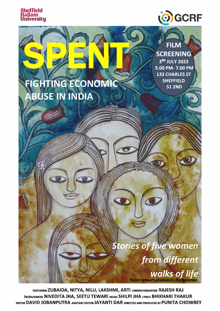 Spent: Fighting Economic Abuse in India is based on the first-hand accounts of five women, following interviews with 50 Hindu and Muslim women across a range of occupations, class and caste demographics. It aims to shine a light on the resilience of the women and their spirit in the face of adversity and economic abuse.