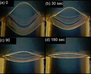 Figure 3. A coating of shape memory polymer prevents PET from collapsing instantaneously at 50°C.