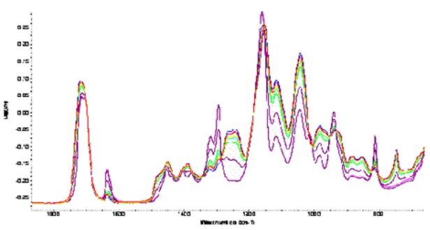 Figure 3. Spectral changes in the fingerprint region during polymerisation
